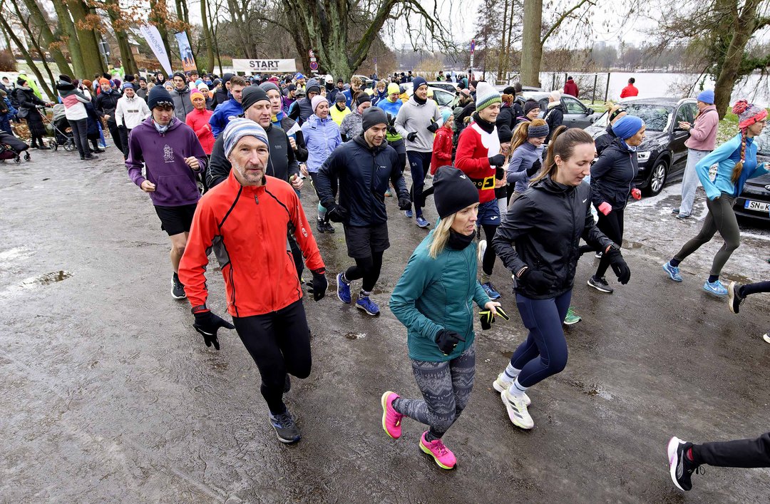 Rund 1.300 Starter ließen sich vom "durchwachsenen Silvester-Laufwetter" nicht abhalten und nahmen das Angebot zum sportlichen Jahresabschluss an! Gelaufen wurden eine bzw. zwei Runden um den Faulen See (4 bzw. 8 km) ohne Wertung.
