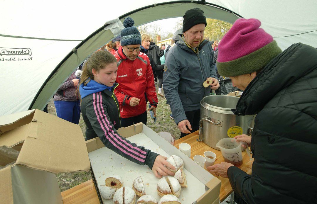 Nach dem Lauf gab es auf dem Gelände der Kanurenngemeinschaft Schwerin leckere Berliner, heiße Getränke und gute Gespräche!