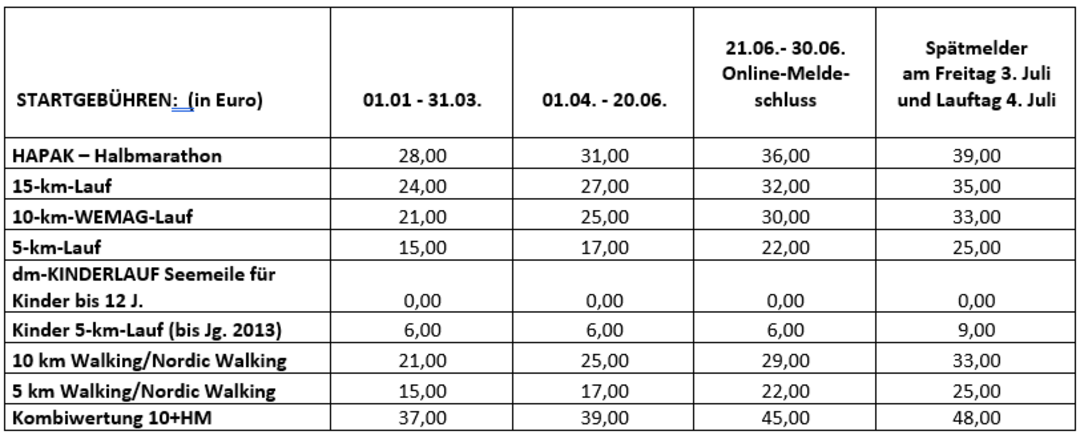 - Seemeile: Geehrt werden die Erstplatzierten der Altersklassen m/w nach dem Start des 10 km - Walking/N. Walking.